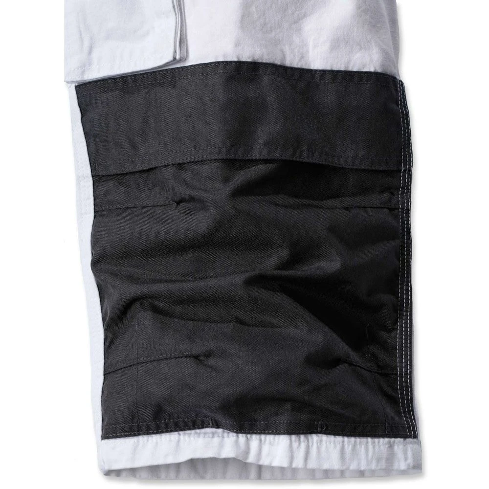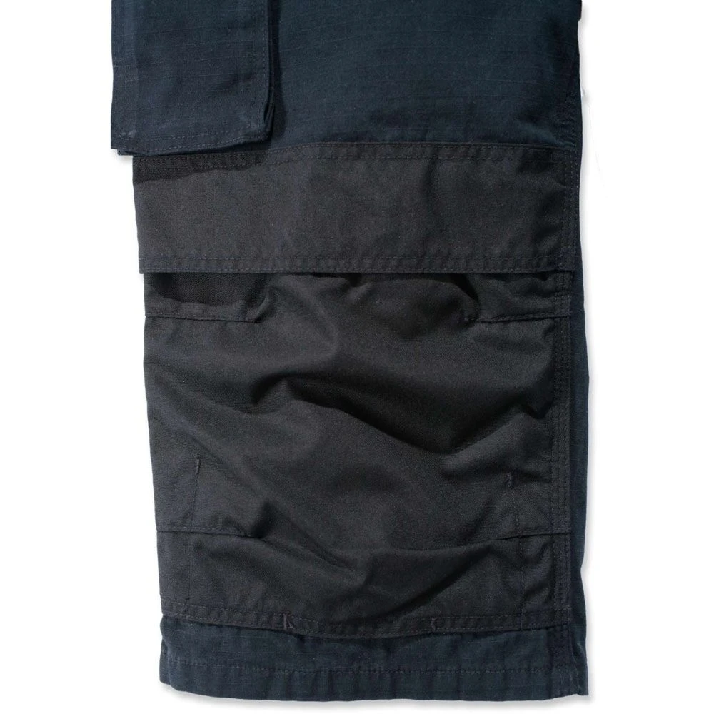 - High tenacity nylon lined front ledge- and back pockets. High tenacity nylon double knees with secure knee pockets. Large capacity cargo pocket with mobile phone pocket.