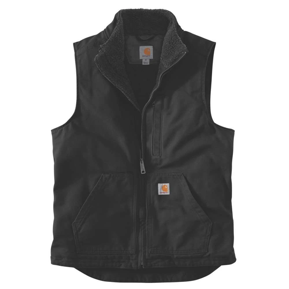 - Front pockets with Sherpa lining. Pen stall on wearer’s right lower front pocket. Full-length front zipper.