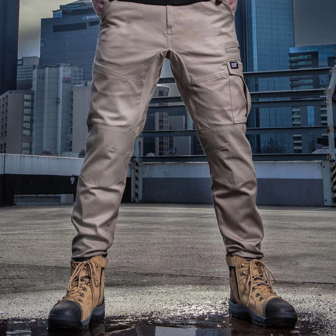- Oxford canvas knee overlays to increase the life of the garment. Bellowed side cargo pocket with secure closure.