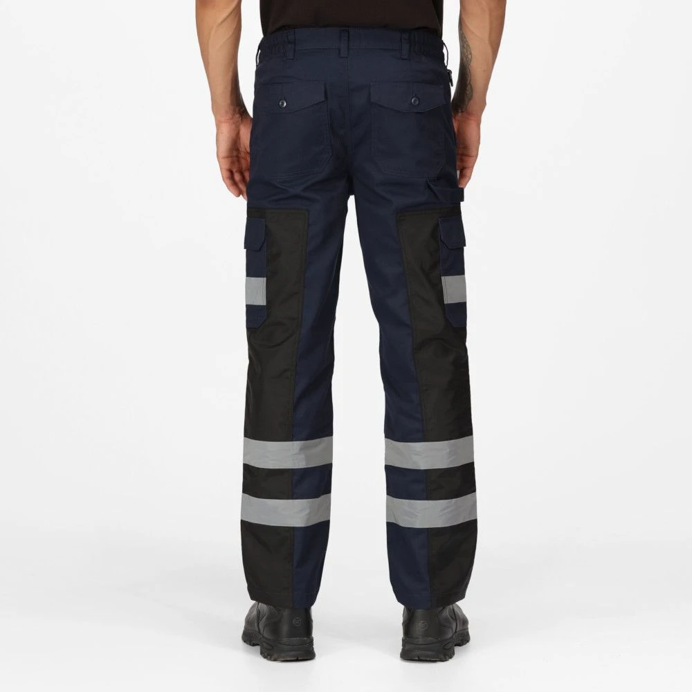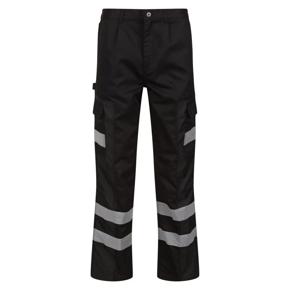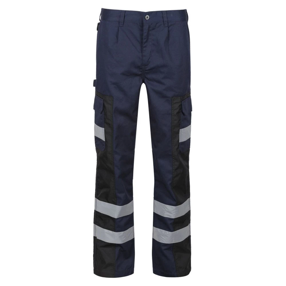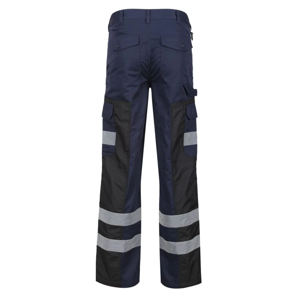 The garment features tough ballistic nylon panels in strategic areas that resist abrasions, offering better protection against sharp objects. The crotch seam is reinforced for added durability, and reflective elements enhance visibility. It comes with multiple pockets, including two side pockets, two cargo pockets, and two rear pockets. The side elastic waist provides a comfortable fit, while a hammer loop adds convenience.