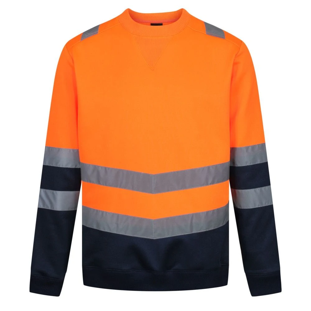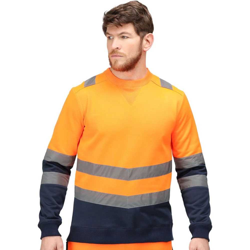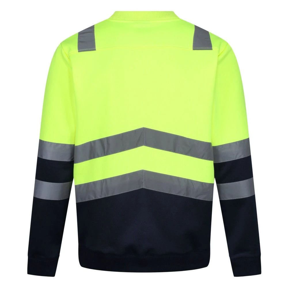 Made of 65% polyester, and 35% cotton brushed back fleece fabric, the Regatta Professional Men’s Reflective Jumper features ribbed cuffs and hem. It has a crew neckline with angled chevrons which allow you to let people know which way you are facing towards. It conforms to the high visibility standards under EN ISO 20471:2013+A1:2016 Class 2. Add this jumper to your winter collection.