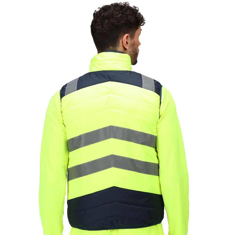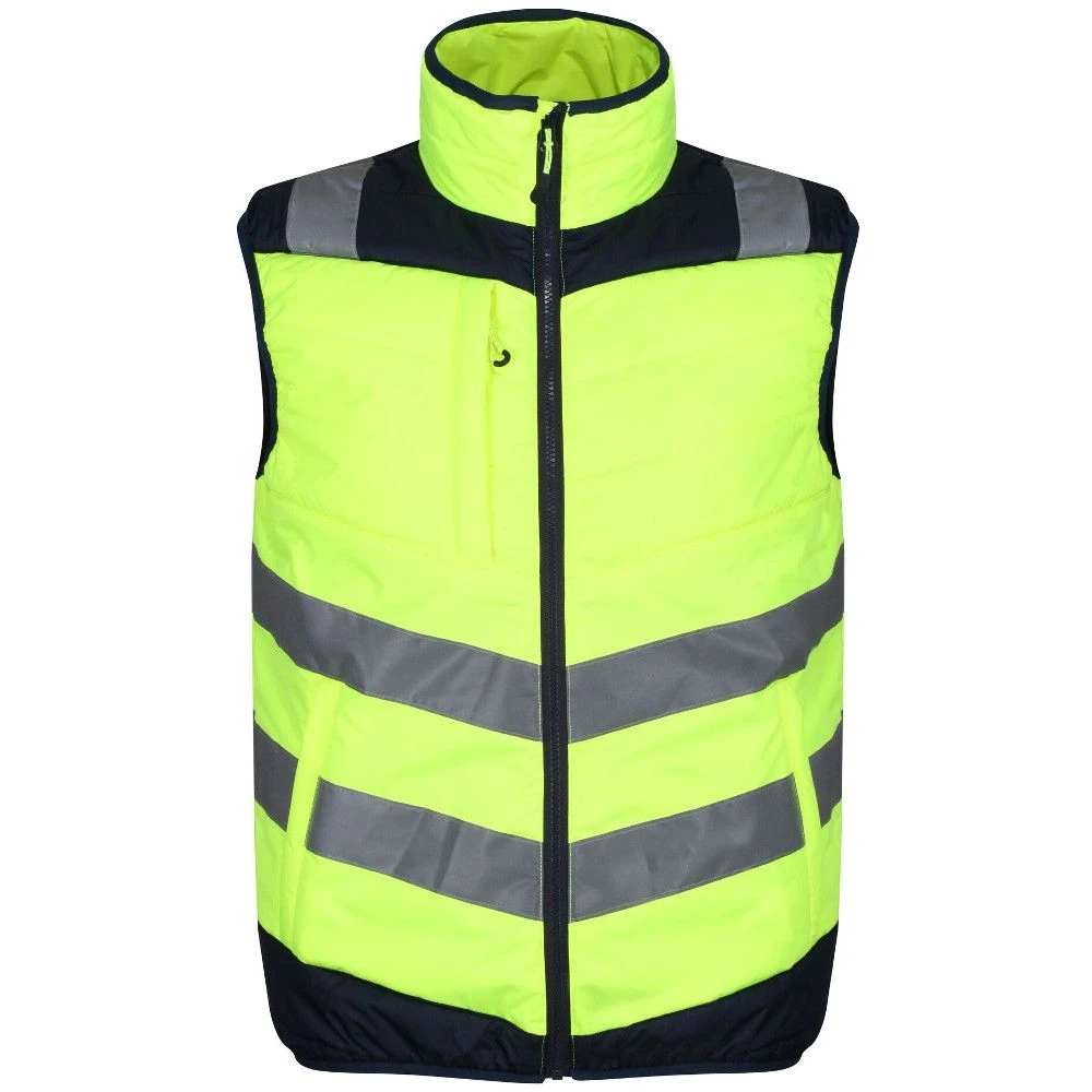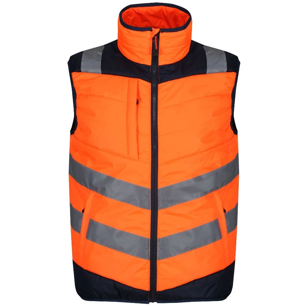 Made from Hydrafort polyester matrix dobby fabric, the Regatta Professional Men’s Gilet Bodywarmer is waterproof and high visibility thermal. The polyester taffeta lining and Thermoguard 140 gsm insulation offer warmth by trapping the body heat. The armholes, hem, and collar provide comfort and ease in movement and the zippered pockets enable safe stash storage. The orange colourway conforms to RIS-3279/TOM when worn with RIS-3279-TOM Class 2 upper body cloth. The ID reflection informs others about the face direction.