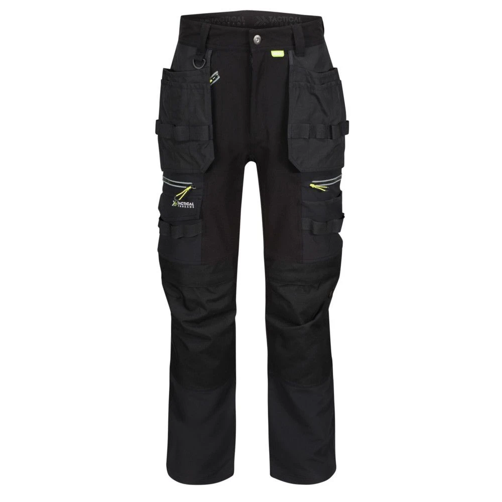 - Special Features: Cordura top loading knee pad pockets. Reinforced seams with triple stitching. Reinforced crotch seam. Easily accessible foldaway ‘Holster’ pockets with multiple compartments.
