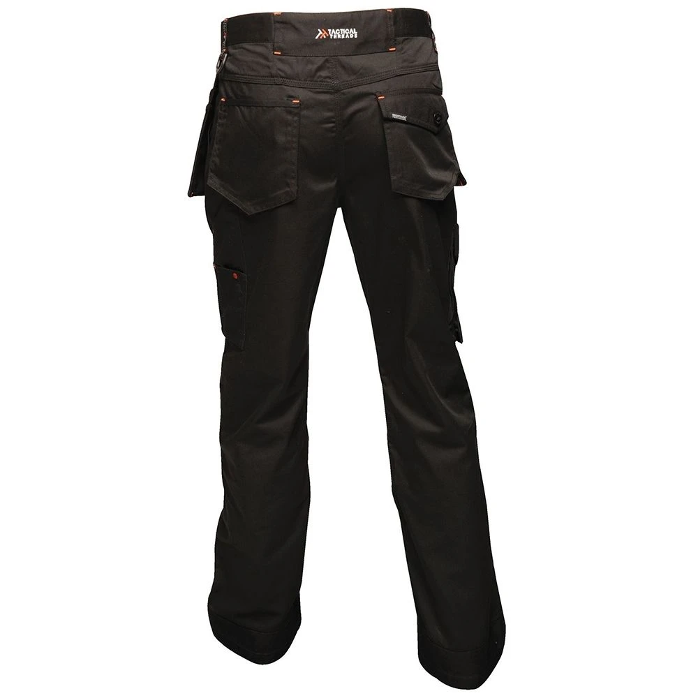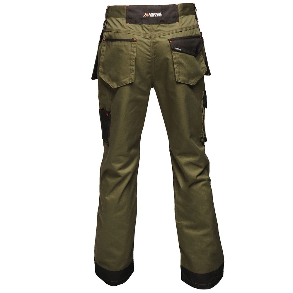 - Durable water repellent finish. Holster pockets at waist – fold away when not in use. Cordura bottom loading knee pockets.